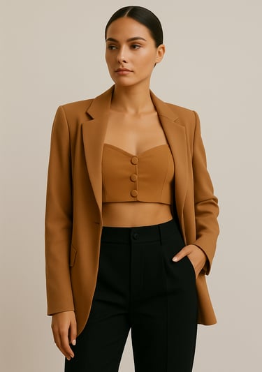 Even in the cold, cropped tops remain strong, now appearing in thicker fabrics. They’re perfect for layering under oversized sweaters, shirts, or blazers. The contrast between a shorter top and a structured piece (like high-waisted pants or a long coat) creates a stylish and modern balance.